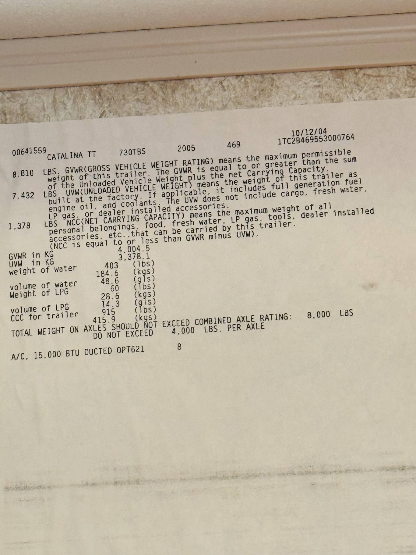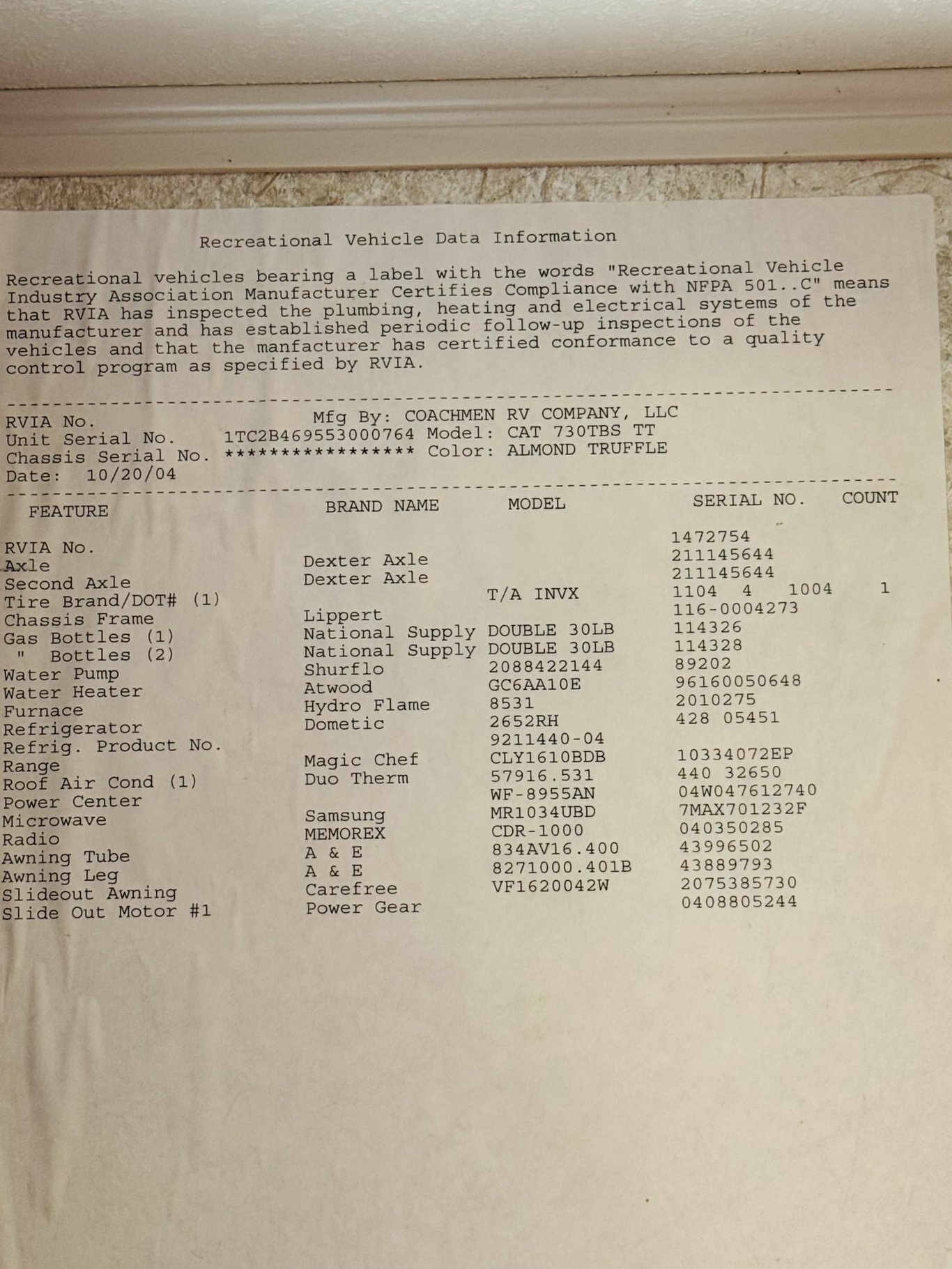 Year/Model: 2005 Coachmen Catalina 730TBS
