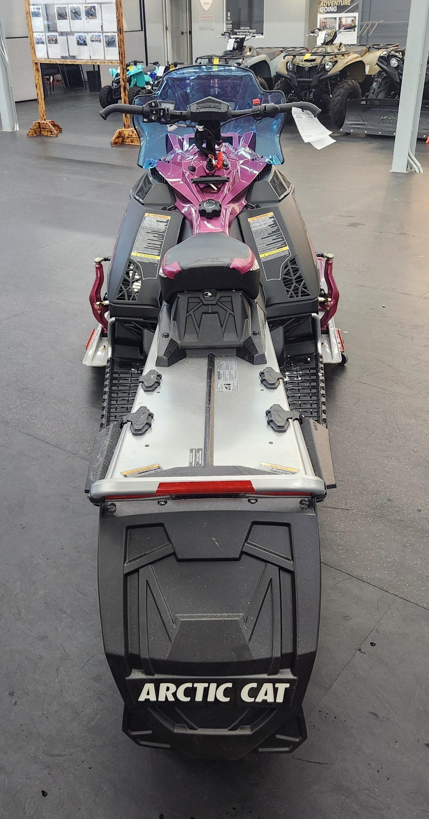 The 2026 Arctic Cat ZR 858 137 EXT EPS is a 2-stroke snowmobile built on the new Catalyst platform, featuring an 858cc engine with increased power, electronic power steering (EPS) for easier handling, and a Garmin G8 digital display. It has a 137-inch track, a laydown engine design, and adjustable ATAC suspension on the rear skid, withFOX shocks on both the front and rear.
