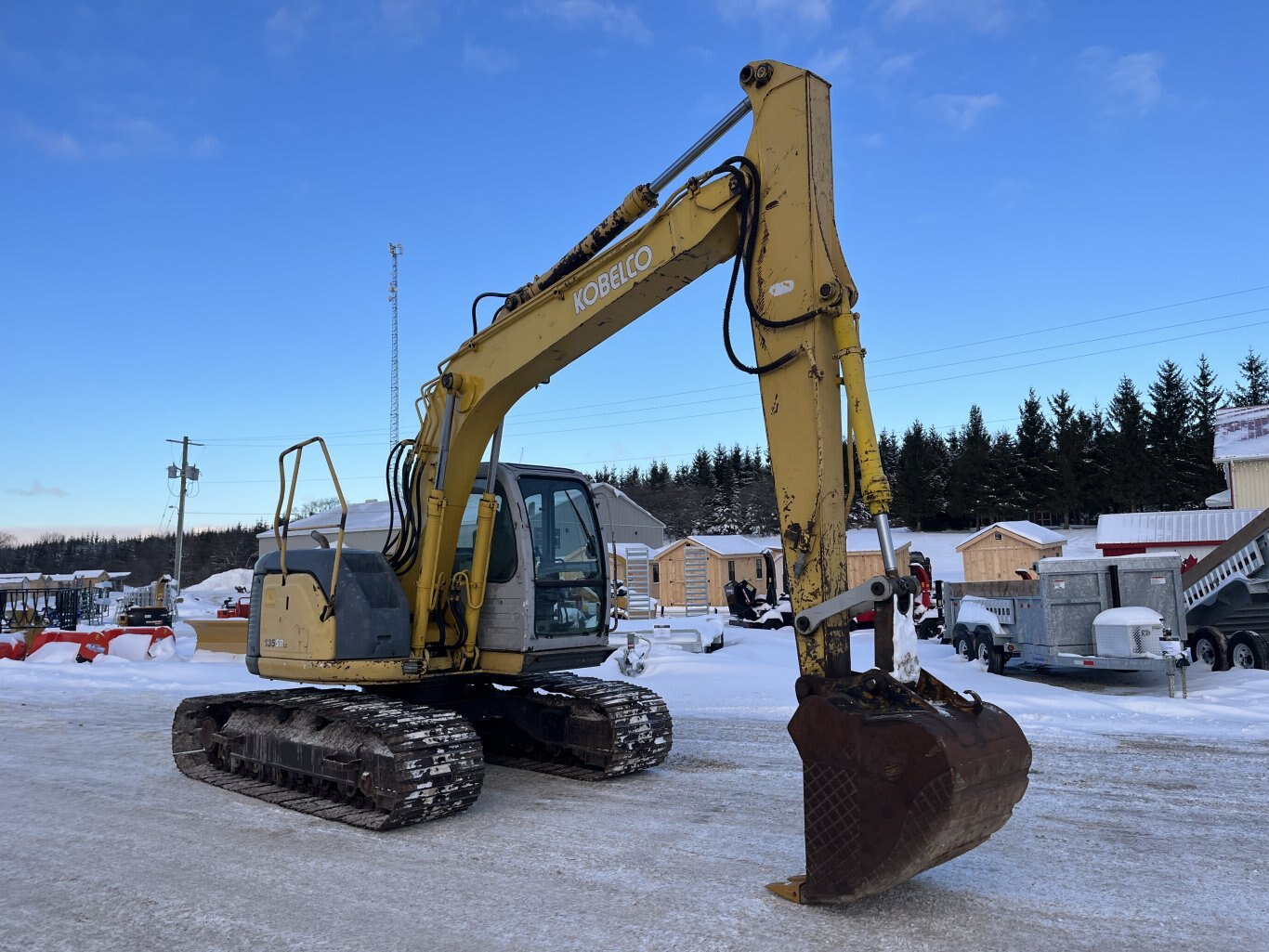 1999 Kobelco sk135SRLC is powered by a 80hp Isuzu diesel engine. Two speed driveline. Enclosed heated cab . Unit weights about 31000lbs. Hour meter reads 7153.
