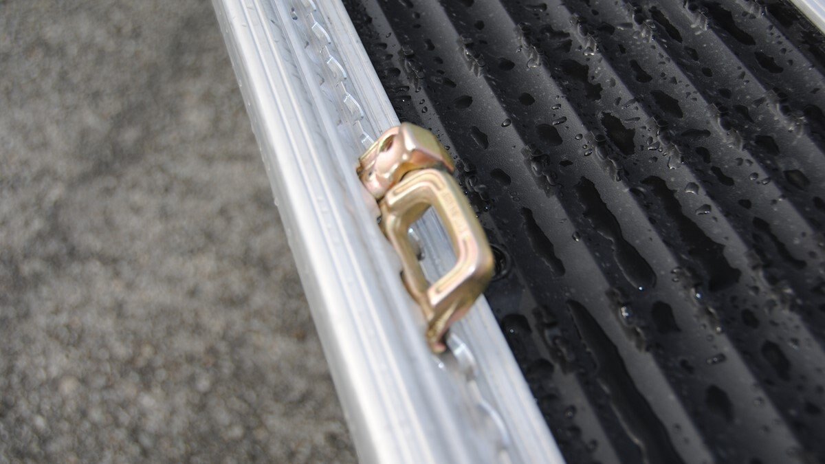 • Tie down track at a 45-degree angle for easily tying down toys & loads