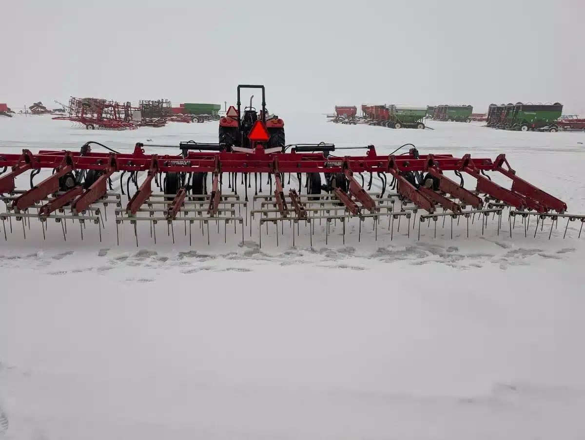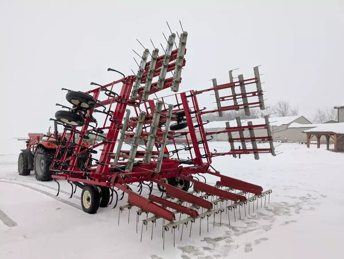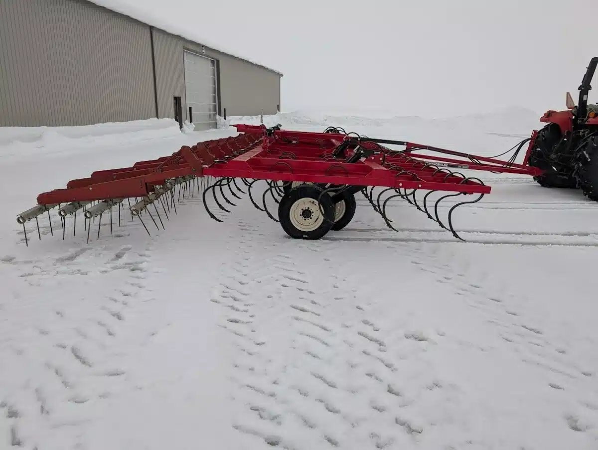 5 bar, sand blasted and repainted, rear hitch, new HD high clearance S tines, new duck sweeps, new hoses, and used coil tine harrows Stock # BR03204