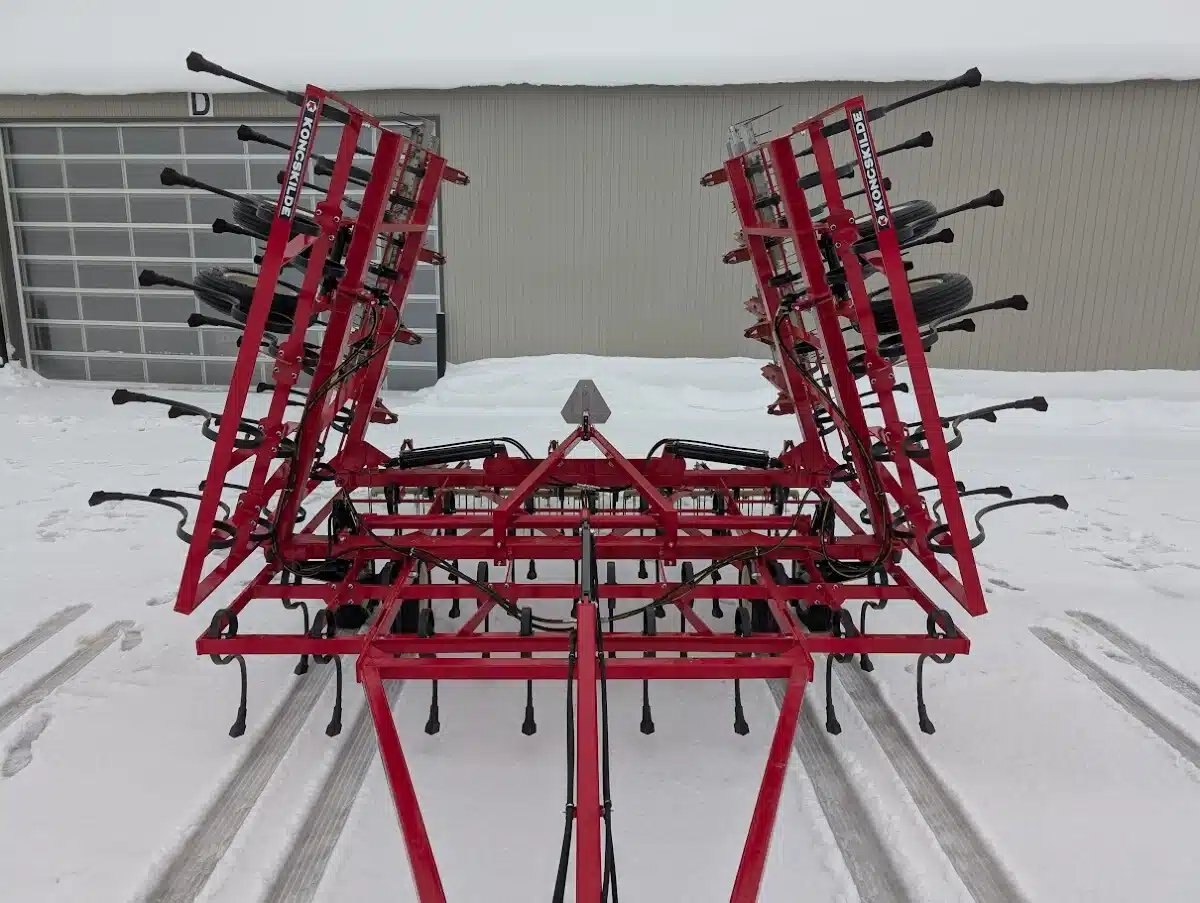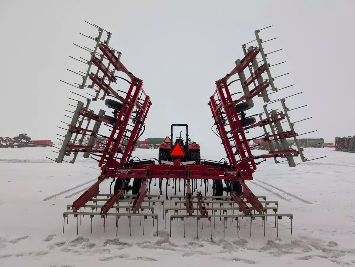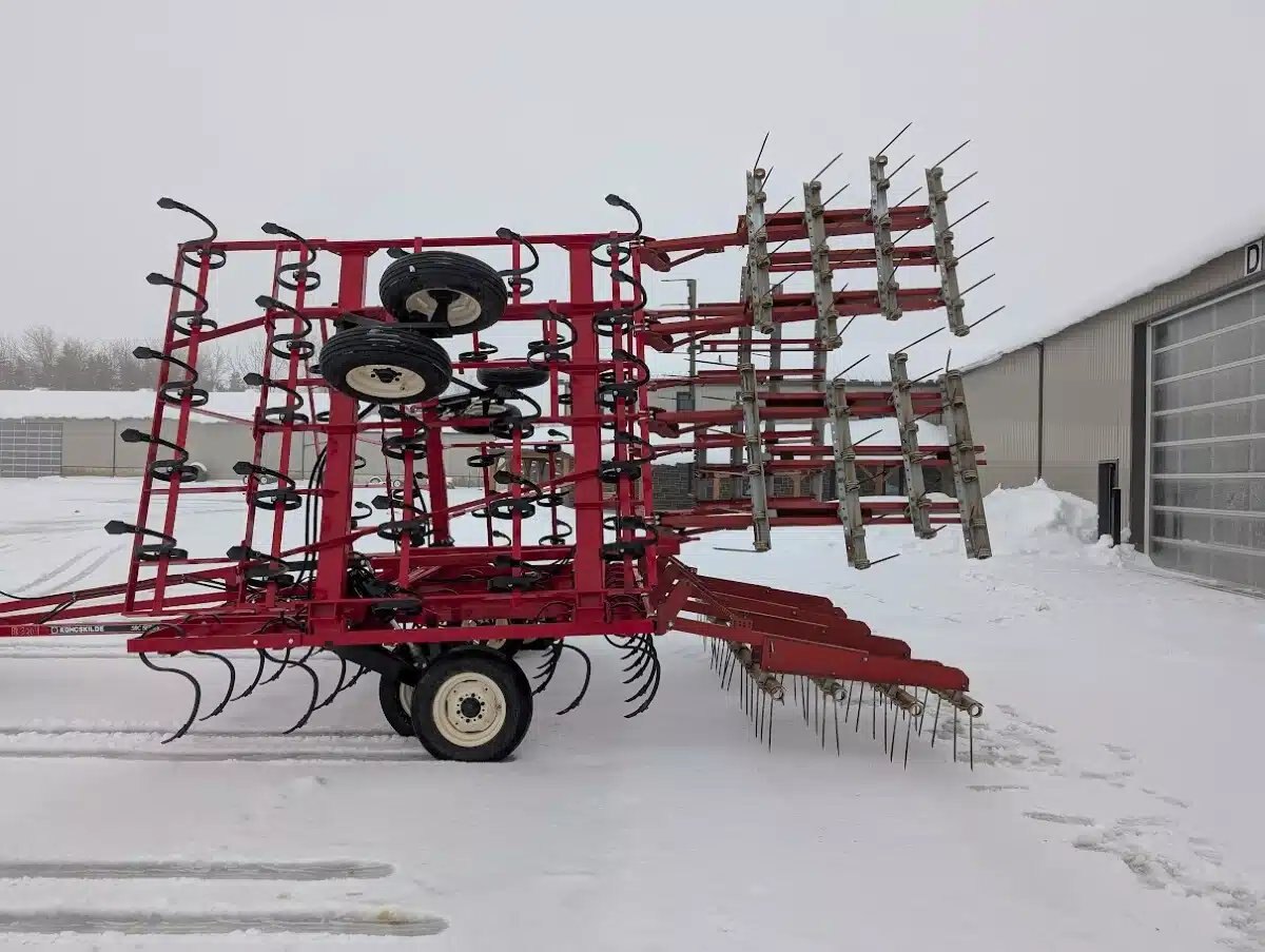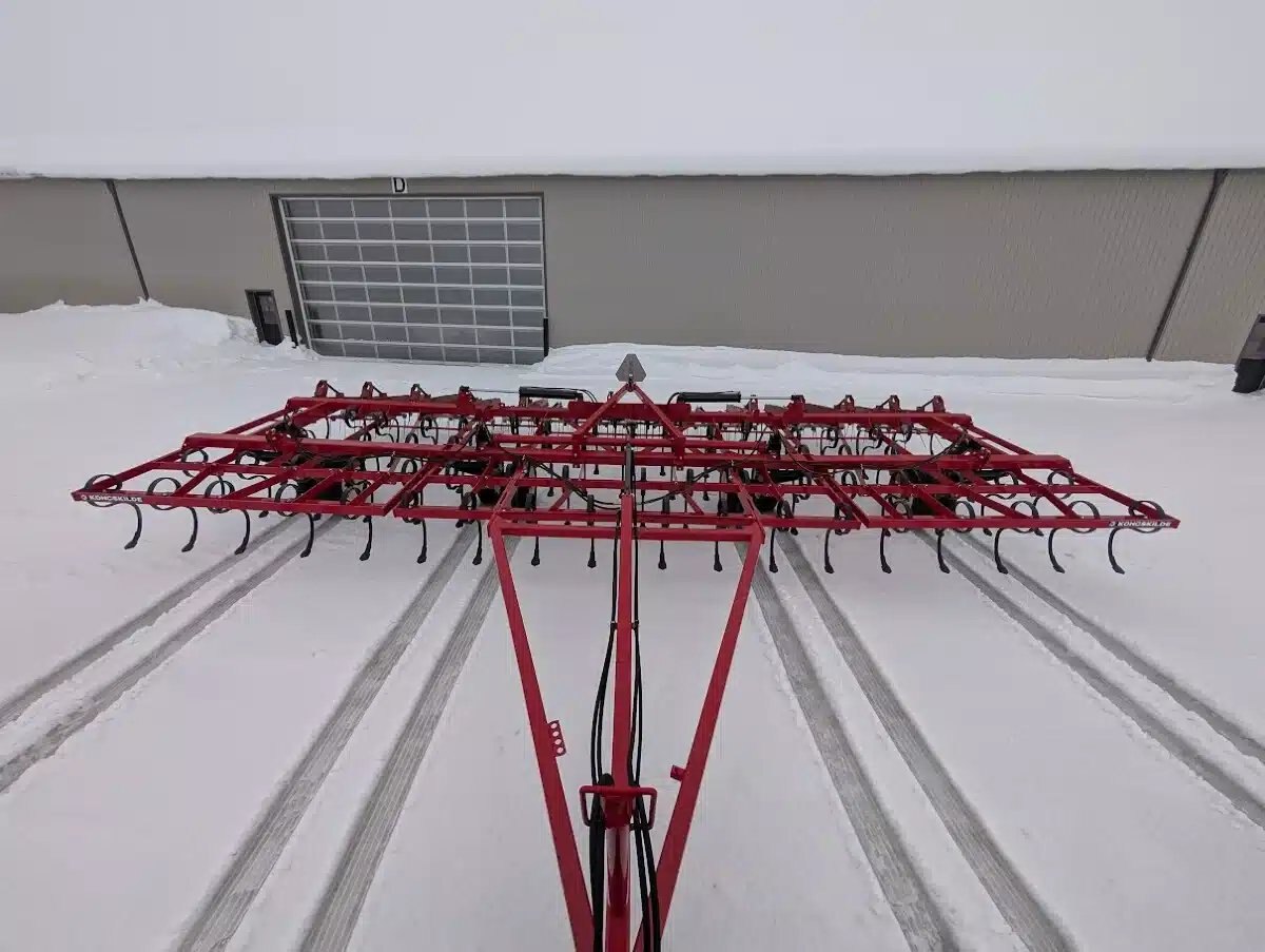 5 bar, sand blasted and repainted, rear hitch, new HD high clearance S tines, new duck sweeps, new hoses, and used coil tine harrows Stock # BR03204