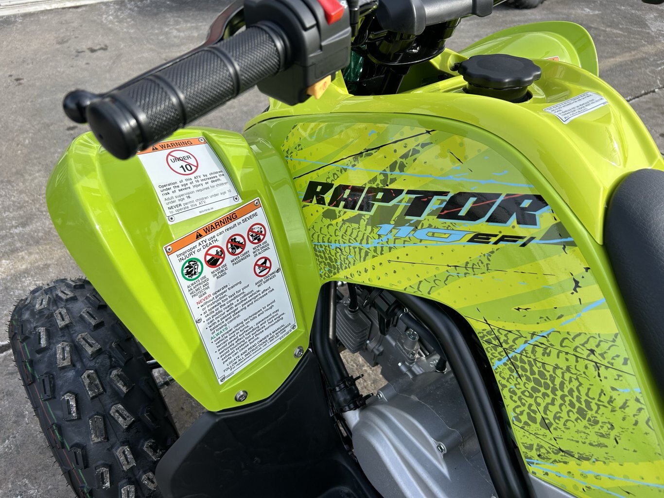 CALLING NEW RIDERS. With a 112cc engine, fuel injection, electric start and legendary Raptor styling, this youth ATV is pure fun for riders age 10 and up.