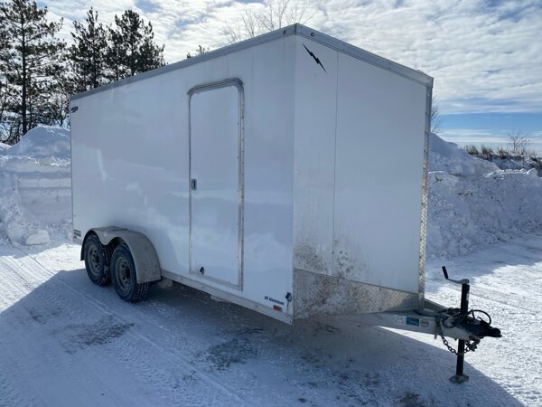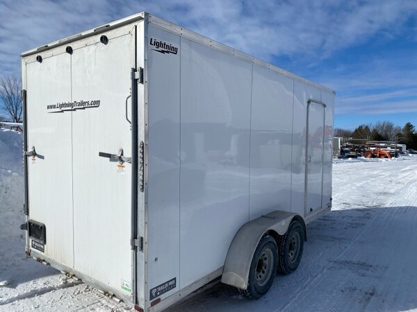 2022 Lightning 7x18 V-nose cargo trailer - tandem\n3500lbs axles, rear ramp, side door, spoiler