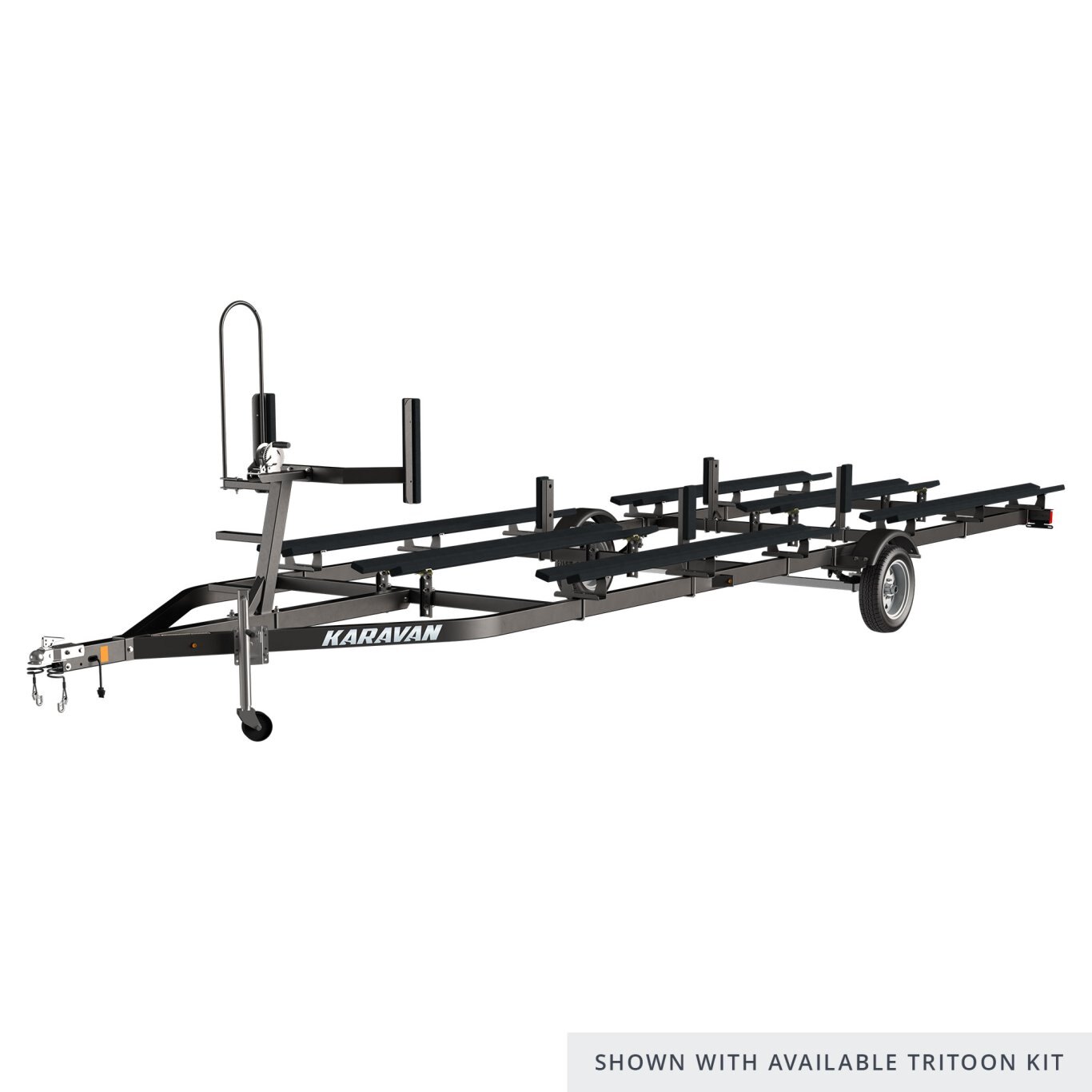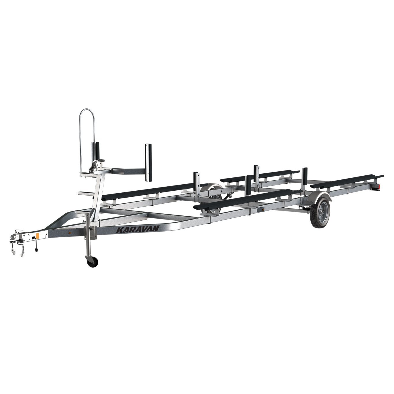 | Larger in size, our Single Axle Large Pontoon Trailer is designed to fit pontoons up to 25′ in length and is easier to turn given its single axle design. This trailer also looks good, with a galvanized or powder-coated finish as attractive as it is durable. Reliability is built in with smart lighting and wheel bearing systems. |