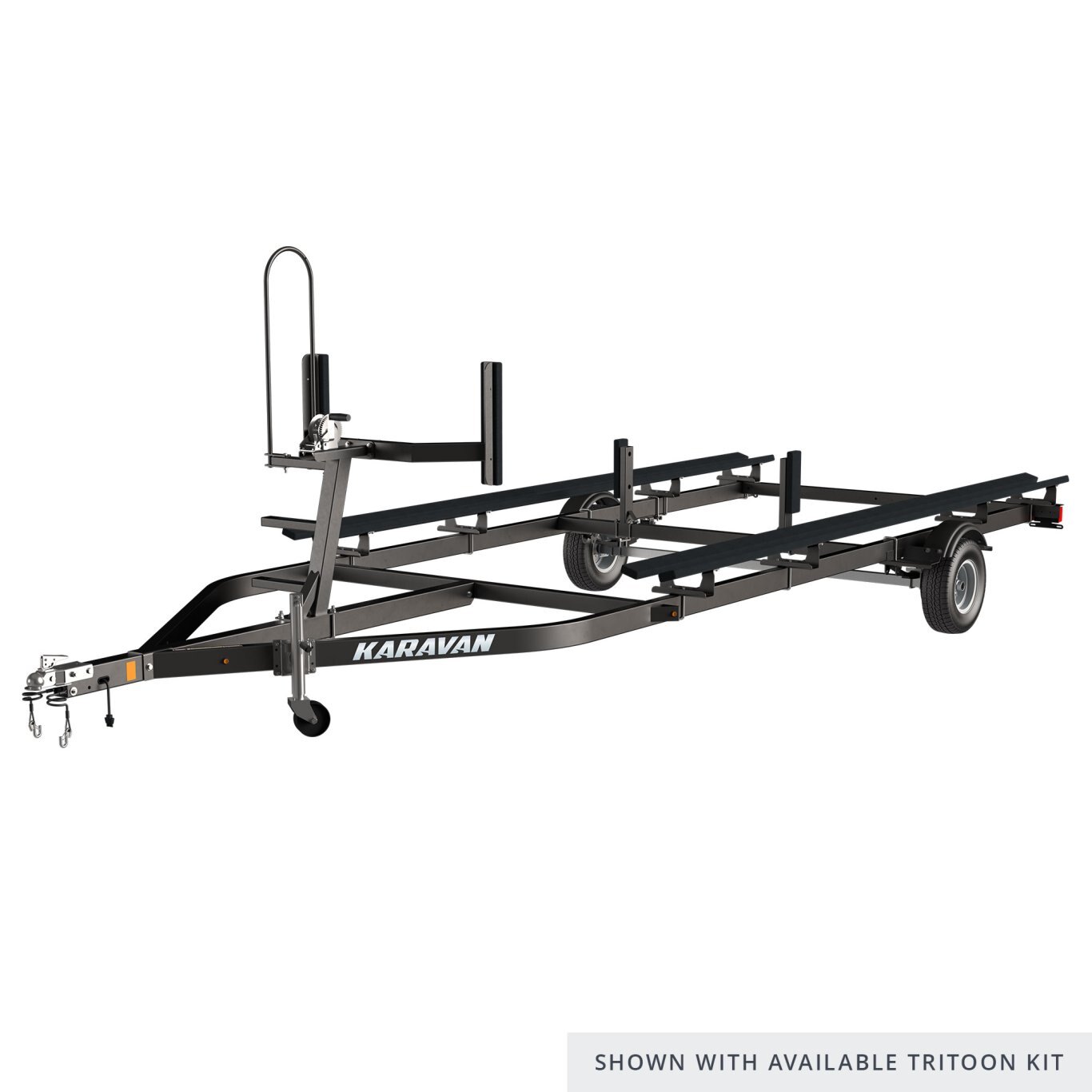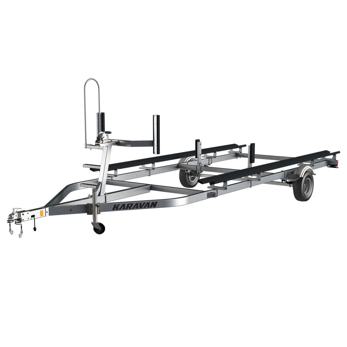 | An excellent fit for smaller pontoons, the Single Axle Small Pontoon Trailer can fit pontoons up to 18′ in length. This model is easy to move and turn, given its single axle design. This trailer also looks good, with a galvanized or powder-coated finish as attractive as it is durable. Reliability is built in with smart lighting and wheel bearing systems. |