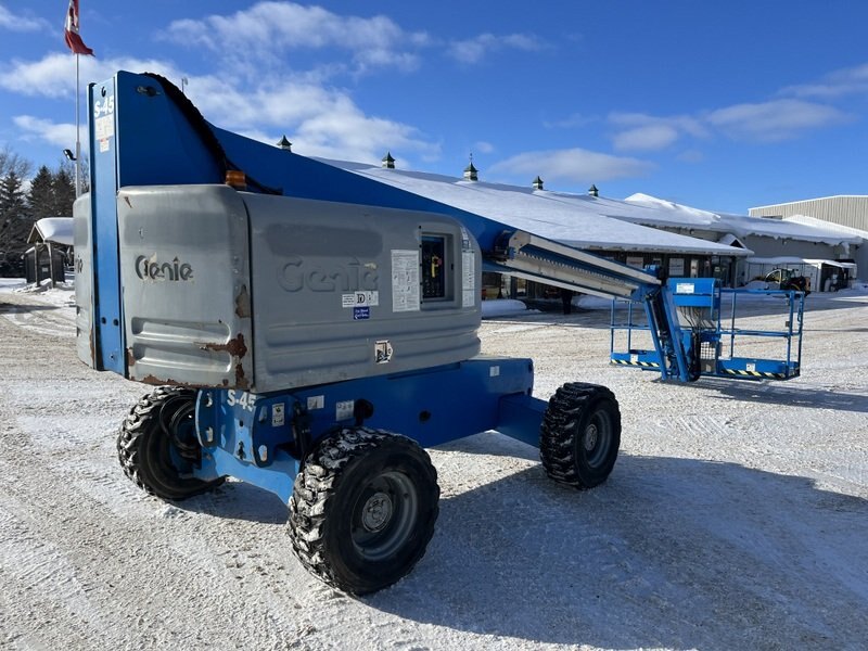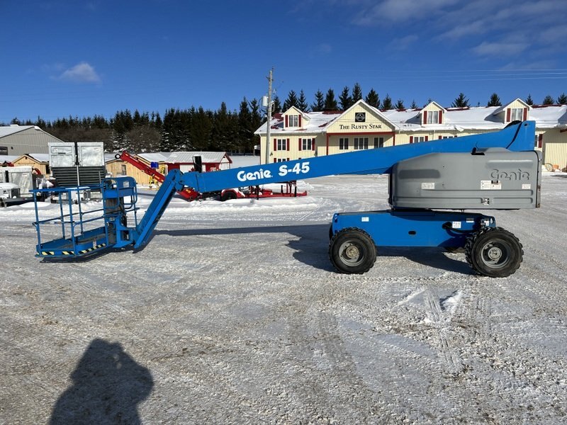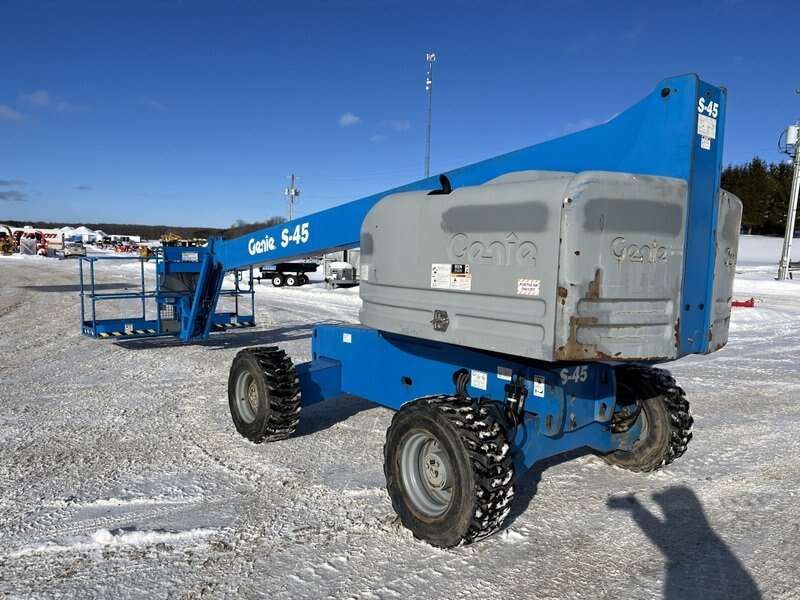 2012 Genie S-45 straight boom with jib. This boom lift has a platform height of 45 feet giving 51 feet working height and 36 feet outreach. 4WD driveline . Powered by a Deutz diesel engine. Equipped with on board generator. Machine weighs around 15,500 lbs. Valid structural till Jan 2028 Hour meter shows 5034.