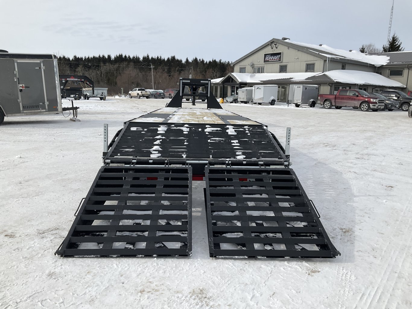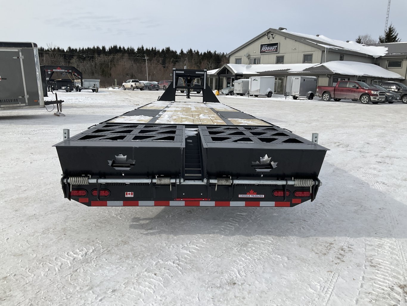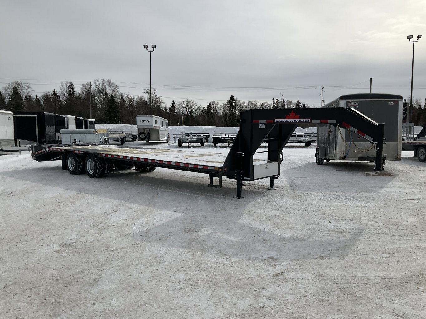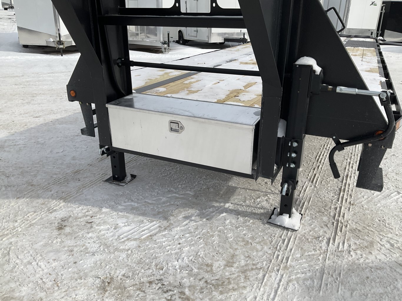 15,000LB GVWR, 2 30,000LB Tandem Dual Spring Axle with Oil Bath Hubs and Slipper Spring Suspension, Electric Brakes on Both Axles, 16 Inch Radial Tires, Adjustable Gooseneck Coupler, 2 12,000LB 2 Speed Drop Leg Jack, Torque Tube, 5' Full Width Ramps, 36' Deck Height, Cross Members Every 16", HD 1/4" Plate Over Axles, Pressure Treated Wood, 5' Angle Iron Beavertail, Stake Pockets and Rub Rails, 2 Side Steps, Drivers Side Winch Track, Spare Tire Mount, LED Sealed Lighting, Sealed Harness, Powder Coat Painted with Scorpion Stone Guard, Winch Plate Between Risers