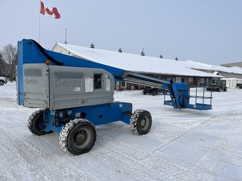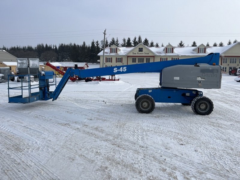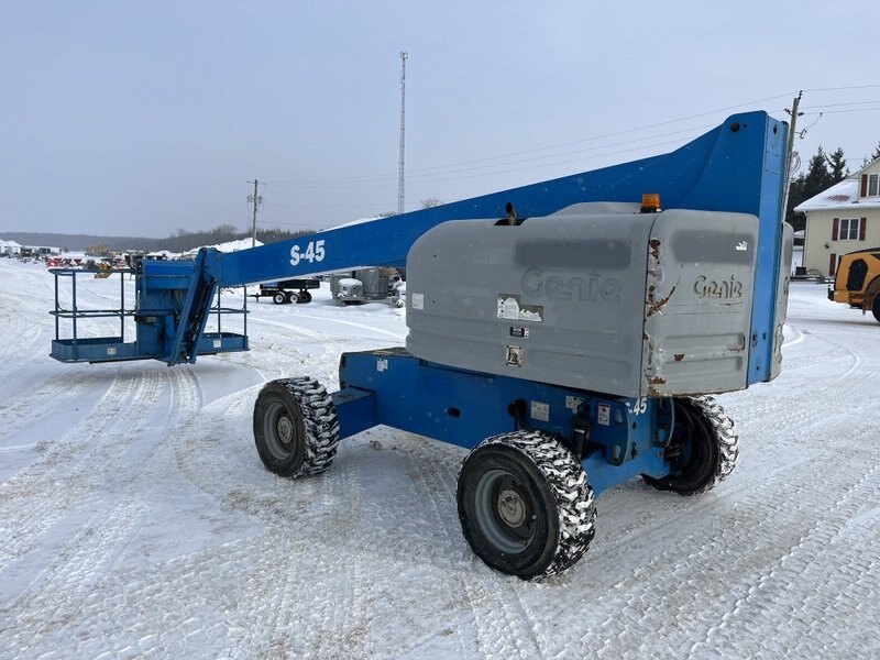 2010 Genie S-45 straight boom with jib. This boom lift has a platform height of 45 feet giving 51 feet working height and 36 feet outreach. 4WD driveline. Powered by a Duetz diesel engine. Machine weighs around 15,500 lbs. Hour meter shows 4152. Vaild structural till Feb 2030
