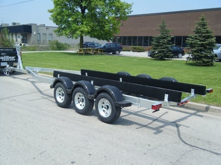Features:- Fully welded tube steel construction Excalibur BT9000 Tri Axle Boat Trailer 9000lbs total boat capacity Also available in Tandem 5200lb axles configuration (same capacity & same price) Most hull sizes in stock or we will custom build to suit your boat. Other Tri and Quad axle trailers available to 28,000lbs |
