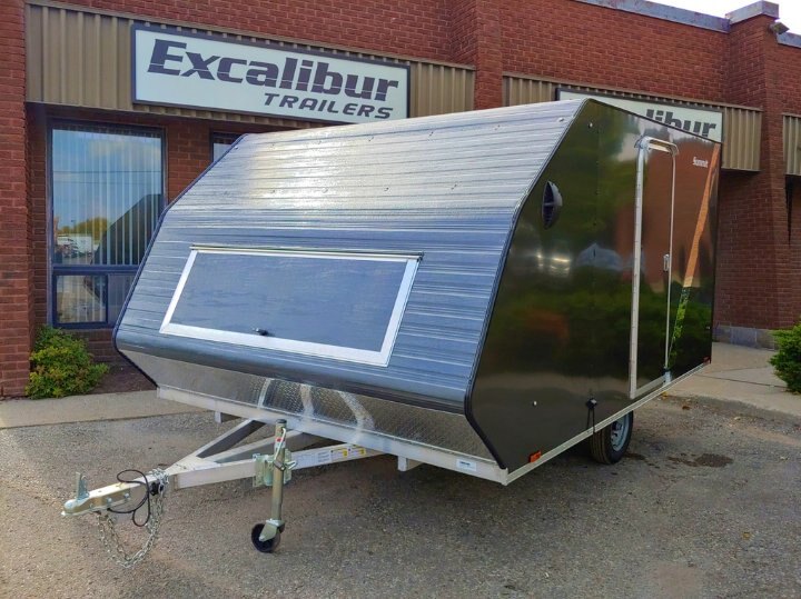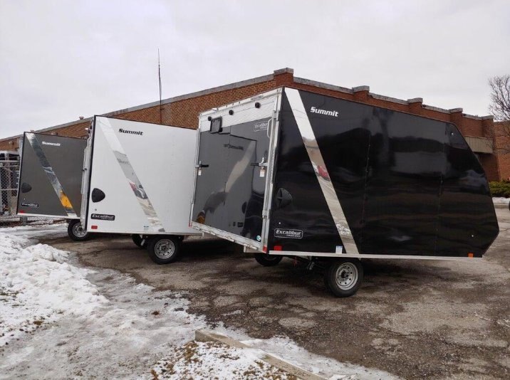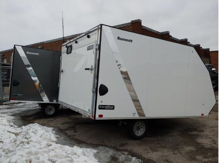 *** INCLUDES FREIGHT & PDI Just Add Taxes *** Exclusive Excalibur Summit Series Hybrid Snowmobile trailer Model!! THIS IS THE BEST PRICE YOU WILL FIND ON A FULLY LOADED HYBRID SNOWMOBILE TRAILER IN CANADA - GUARANTEED! PRICE Includes $1595.00 of NO CHARGE OPTIONS. We NEVER charge extra Freight, PDI or ADMIN charges. Just add the taxes. Last seasons models sold out early so don't hesitate! ALL ALUMINUM HYBRID CROSSOVER RAMP LOAD 2 PLACE SNOWMOBILE TRAILER - FULLY LOADED! All Aluminum ramp load Top of the line Hybrid 2 Place Snowmobile trailer. Standard Features: |