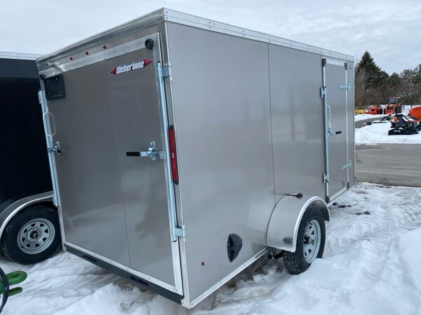 Externalspecs: Pewter Steel Frame Cargo Trailer, 6\'x12\', wedge nose,\n32\" side door, HD rear ramp door spring assist 6\', 16\"\nside z post c-c, 24\" floor cross, 24 roof centers,\nsingle 3500 drop axles, 205x15x5 bolt wheels, upgraded\nto galvanized wheel per axle, 1-1/2 trim level, 3/4\nrainblock floor/ 1/4\" sides, aluminum pc roof, screwless\nsides, 72\" height, pair od side vents- top front & lower\nrear