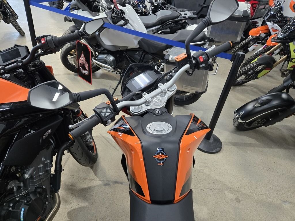 The 9 kg tubular trellis frame made from chrome-molybdenum steel and the equally lightweight, smoking hot swingarm, die-cast in aluminum, impress with extreme levels of torsional stiffness, providing the 148,5 kg Duke with excellent tracking stability and a continuous flow of information to the rider. New triple clamps lower the fork offset, which underlines this characteristic even further. Youll notice.