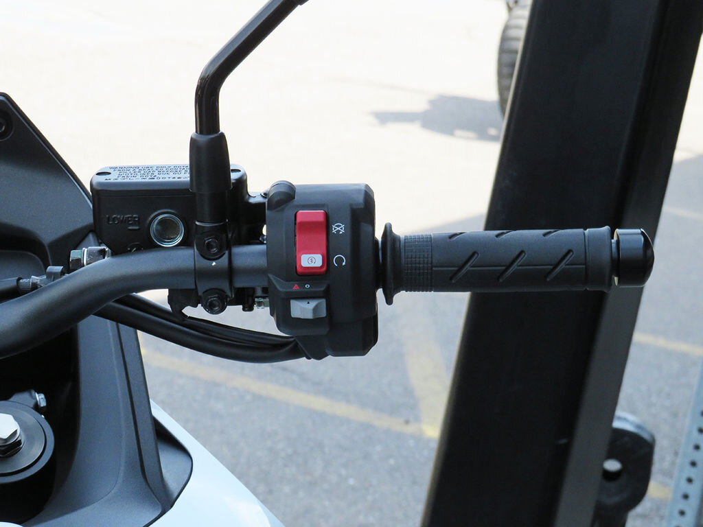 Stopping power- The compact, two-piston calipers that work dual 310mm wave discs at the front, while rear 256mm wave disc is operated by a single-piston caliper. Combined with the with the 2-stage adjustable ABS with the ability to switch off rear ABS for off-road riding in USER mode. This provides confident braking and a sense of security whether you're on a paved road or off-road.