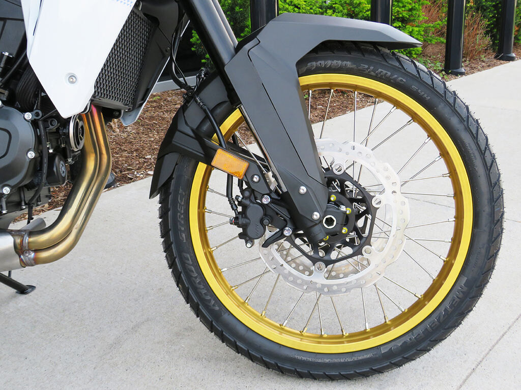 Stopping power- The compact, two-piston calipers that work dual 310mm wave discs at the front, while rear 256mm wave disc is operated by a single-piston caliper. Combined with the with the 2-stage adjustable ABS with the ability to switch off rear ABS for off-road riding in USER mode. This provides confident braking and a sense of security whether you\'re on a paved road or off-road.