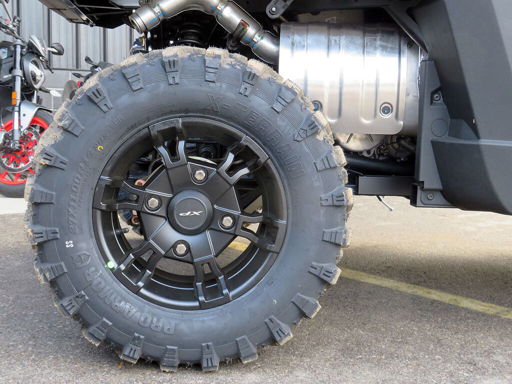 Fend off rocks, stumps, and rough terrain with a rigid one piece chassis, full-body skid plate and massive front bumper delivering maximum protection. 27" 8-ply Pro Armor X-Terrain tires provide improved durability and a more comfortable and confident ride in tough terrain.