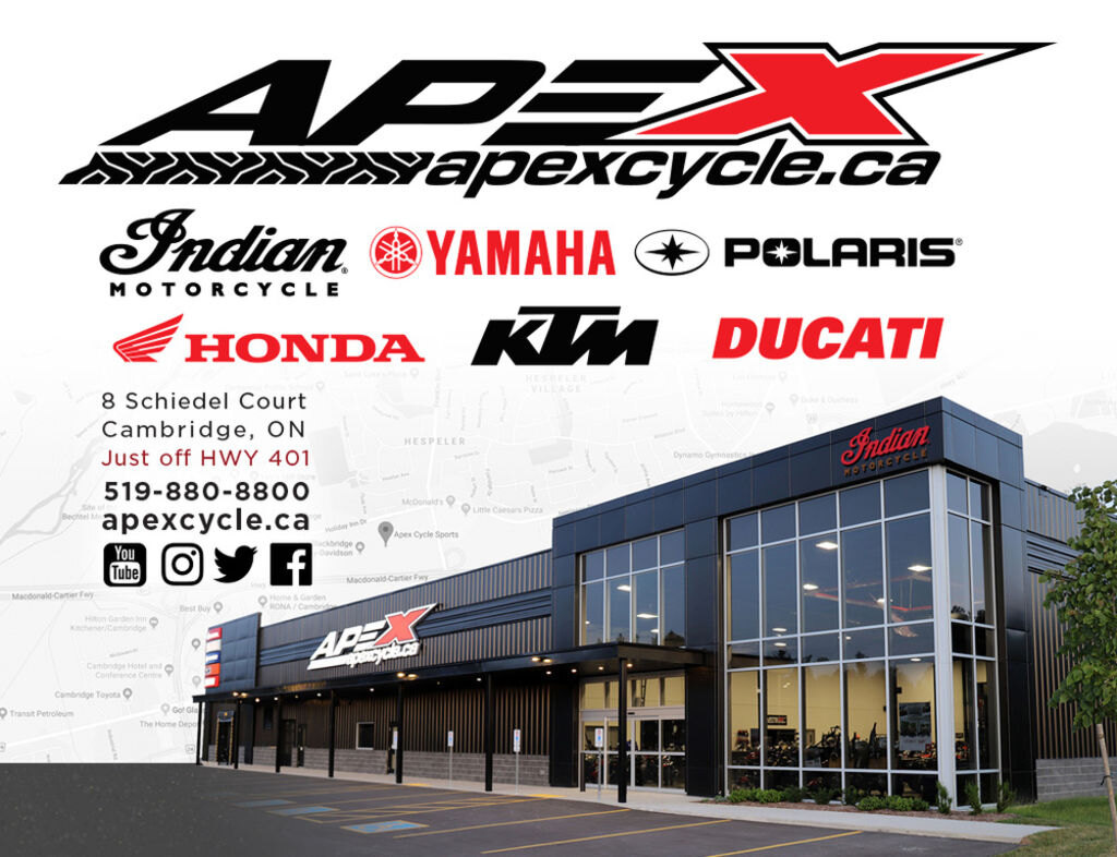 Apex Cycle 1-888-702-4150 Visit our showroom for a huge selection of the brands you love, conveniently located off the 401 in Cambridge.