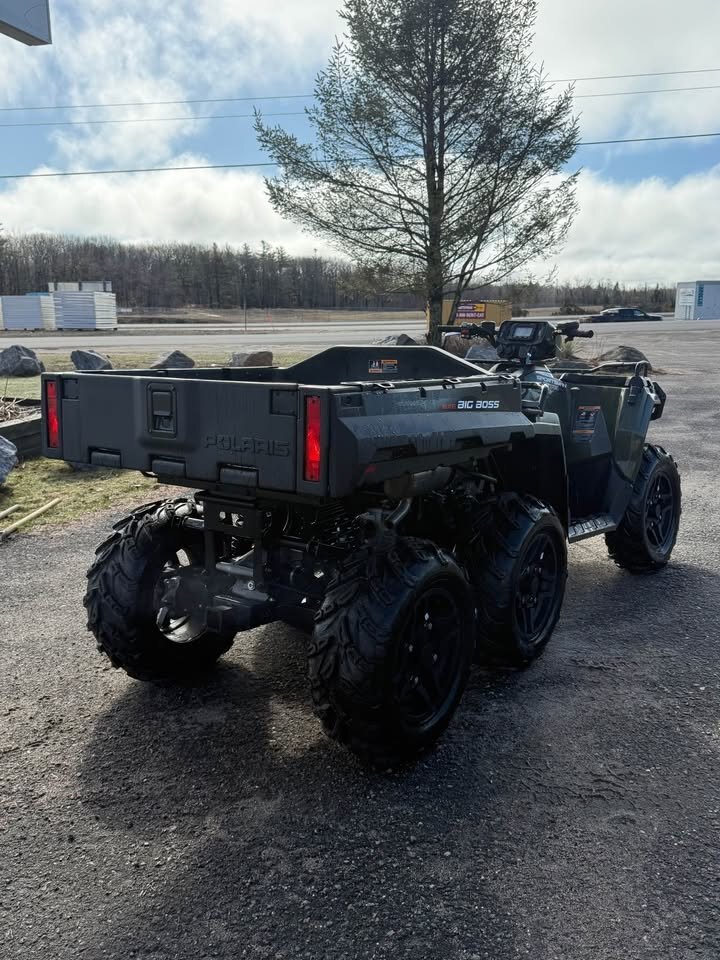 The 2026 Polaris Sportsman 6x6 570 is a heavy-duty, utility-focused ATV featuring a 567cc ProStar engine, 44 HP, and a 6-wheel drive system for maximum traction. It includes a massive 800-lb capacity rear dump bed, 1,500-lb towing capacity, and standard Active Descent Control. Designed for work, it has a 6.75-gallon fuel tank and high-capacity electrical output. Key Features and Capabilities: Performance: 44 HP ProStar 567cc 4-stroke DOHC single-cylinder engine with Automatic PVT P/R/N/L/H transmission. Drivetrain: One-Touch On-Demand AWD/2WD/6WD for superior traction. Suspension: Arched Dual A-Arm front suspension, independent rear suspension (IRS), and 11.5" ground clearance. Cargo & Towing: 800-lb capacity rear dumping box with Lock & Ride system, 90-lb front rack capacity, and 1,500-lb towing capacity. Technology & Control: Electronic Power Steering (EPS), Engine Braking System (EBS), and Active Descent Control (ADC) are standard. Recent Upgrades: 2026 models feature a 2.5x more rigid chassis, updated LED lighting, and a front bumper with an integrated 3,500-lb winch.
