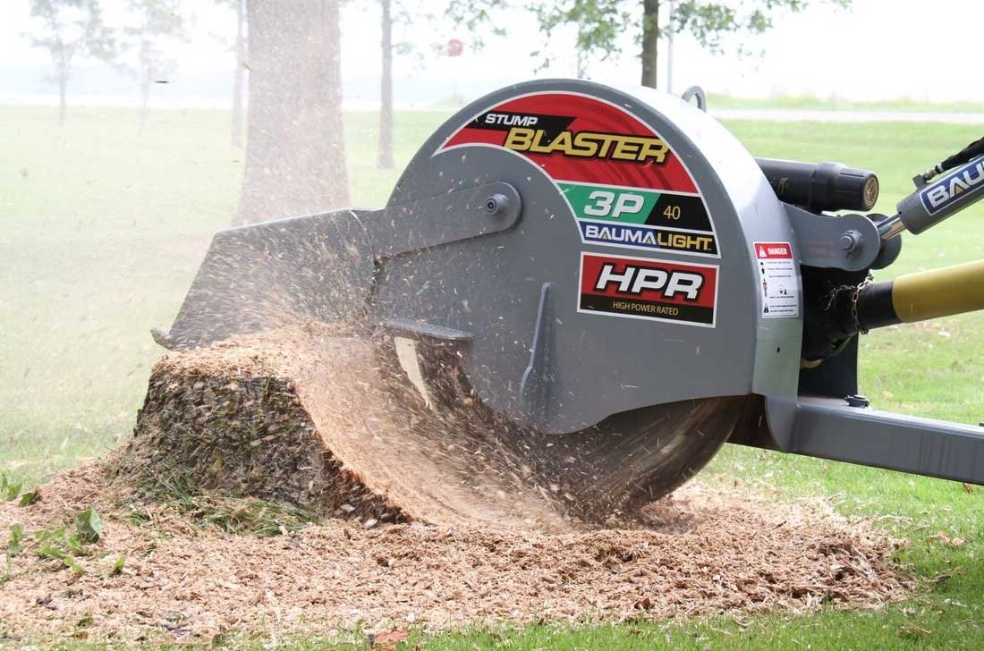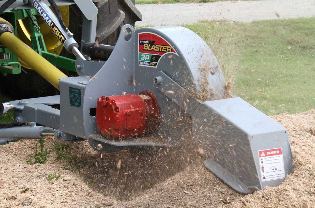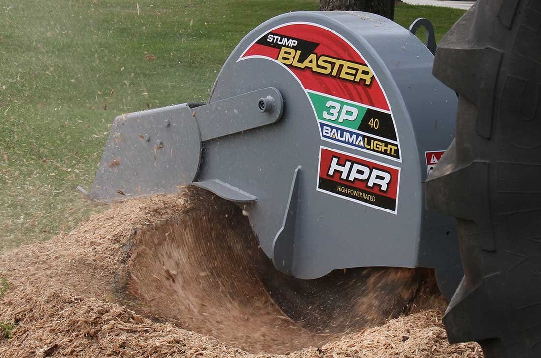 The 3P40 HPR PTO stump grinder is designed with high performance in mind, for tractors equipped with a 60–120 HP and 1,000 RPM PTO. This stump grinder will devour large tree stumps with its 54 replaceable carbide teeth and a 34" rotor. Massive rotor and more teeth with a heavy duty HPR gear box make this Baumalight’s most powerful PTO model. This Stump Blaster has the ability to grind a 24" stump in a few minutes with a cutting depth of 25" above ground and 14" below ground. With direct drive from the engine, all the way through the heavy duty gear box to the teeth, a stump grinder on the PTO of a tractor is the most efficient way to use a stump grinder for lawn care or fence row clearing.