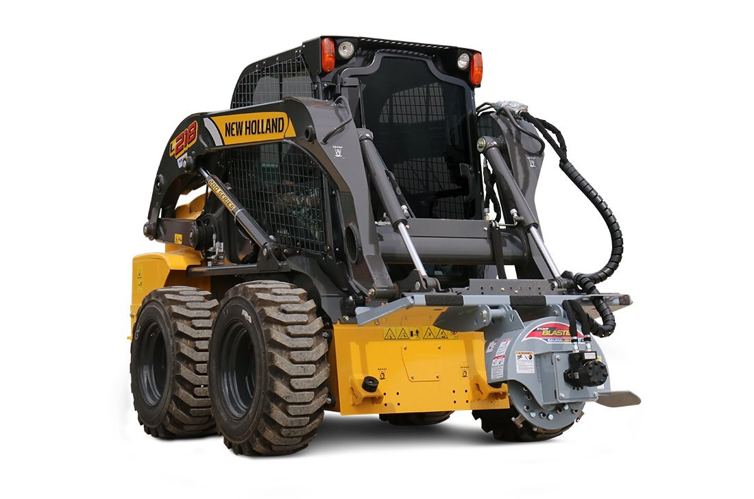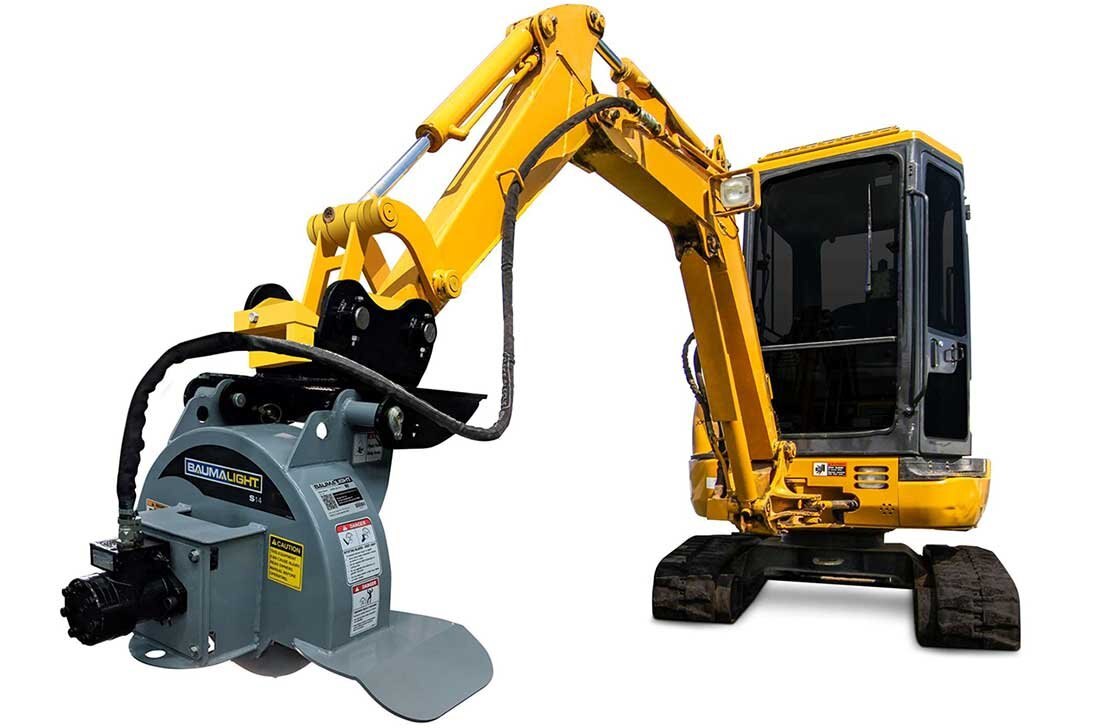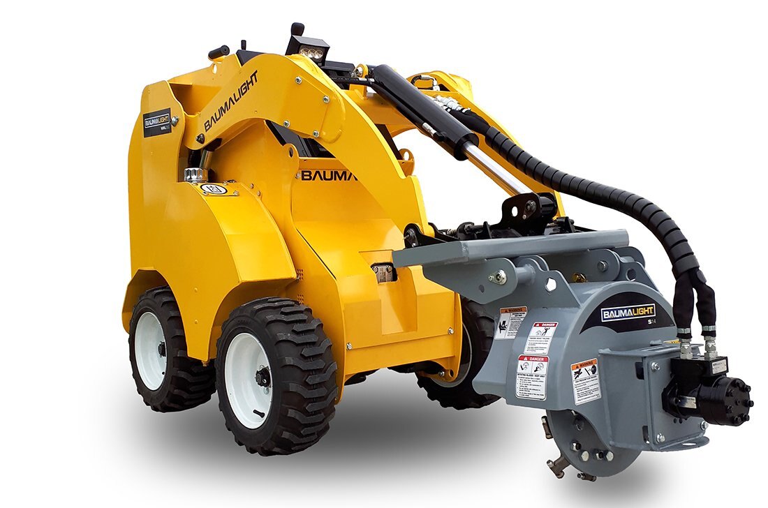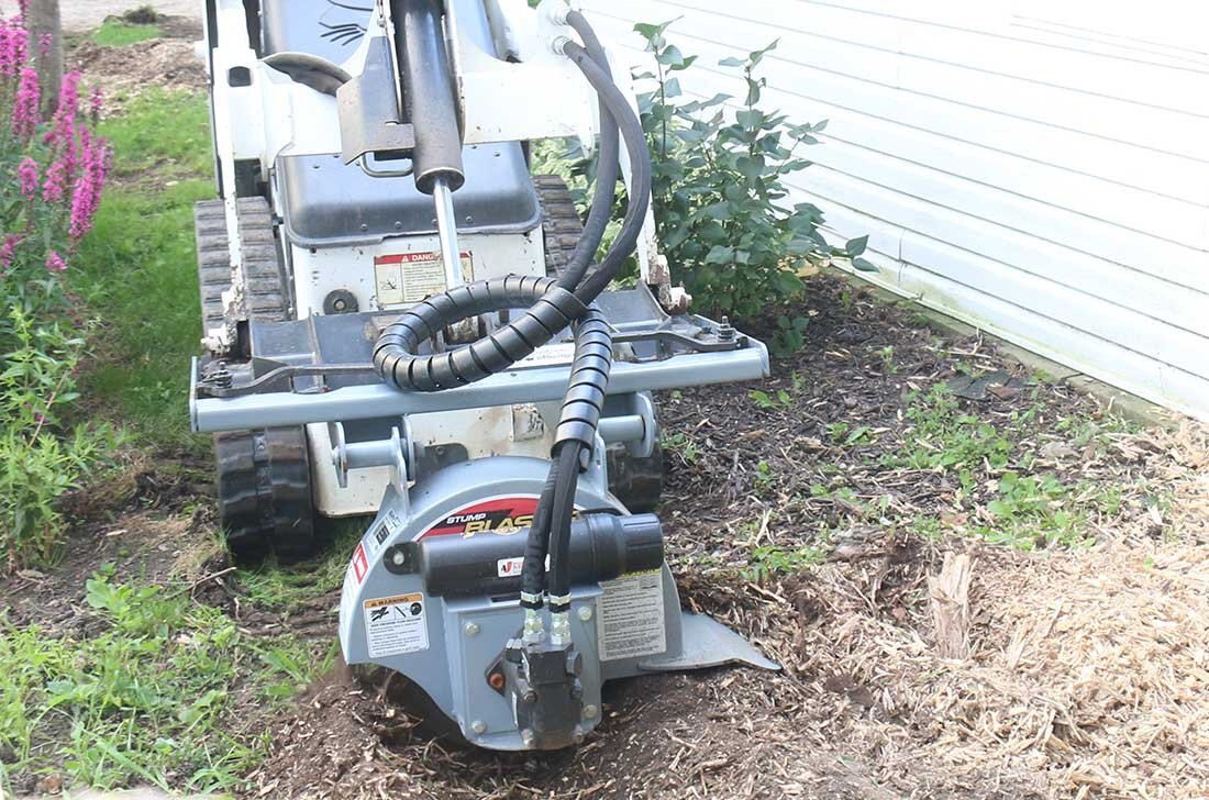 The S14 skid steer stump grinder is designed with simple operation in mind, with no required electrical connection. The direct flow hydraulic drive is designed to provide the best torque and RPM to the cutting head as no flow is diverted to a swing cylinder. The S14 mini tool carrier stump grinder features round carbide teeth which can be rotated three times, letting you grind stumps longer and faster on very low flow. The unique positioning of the rotor allows the operator an excellent view of the grinding action and the heavy duty fixed deflector safely directs the flow of debris. Cutting depth is up to 10" below ground. The S14’s size and the available mini skid steer mount makes it a great stump grinder for better access to tight areas and a nice addition to the rental offering on a mini skidsteer.