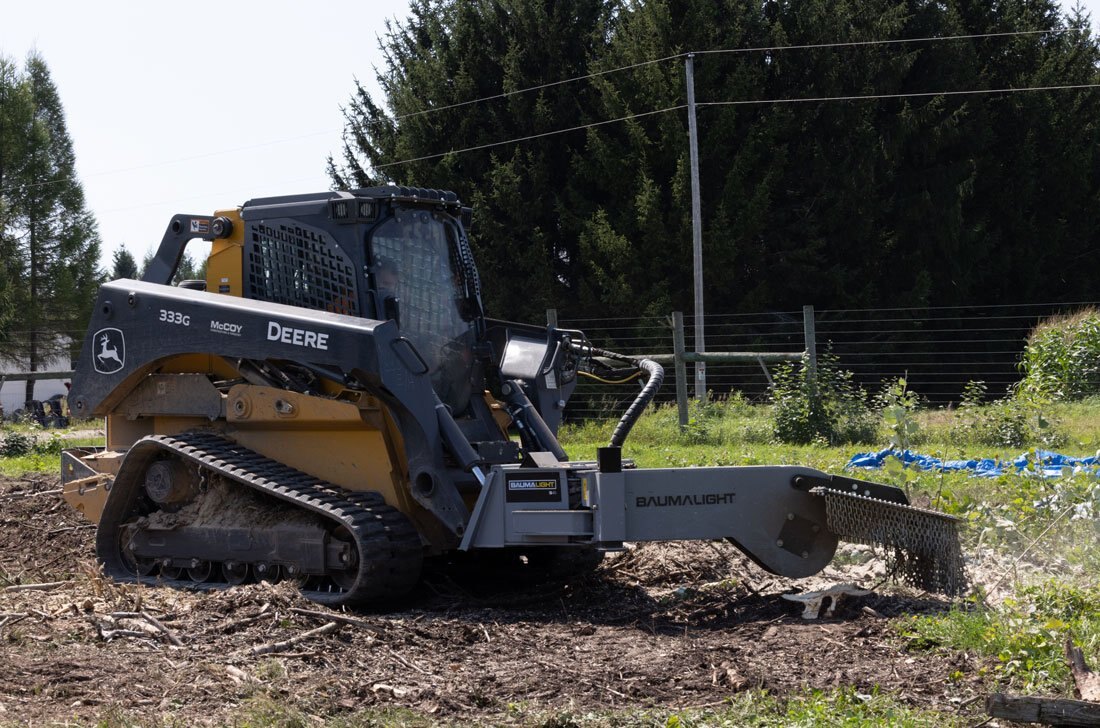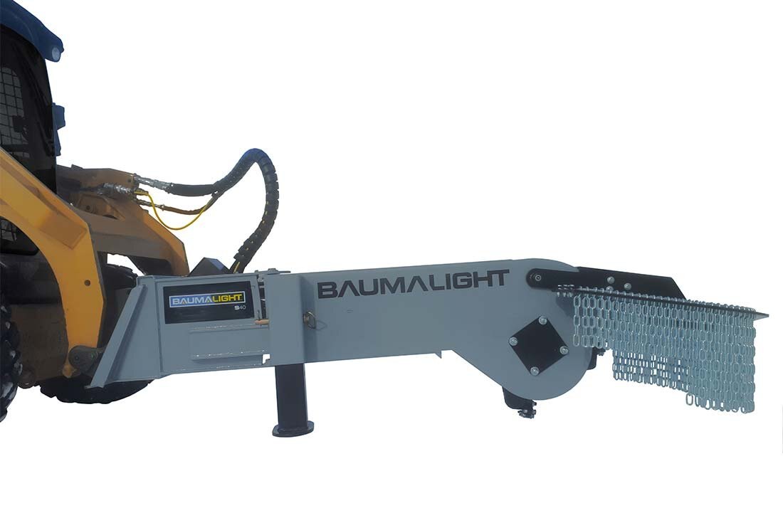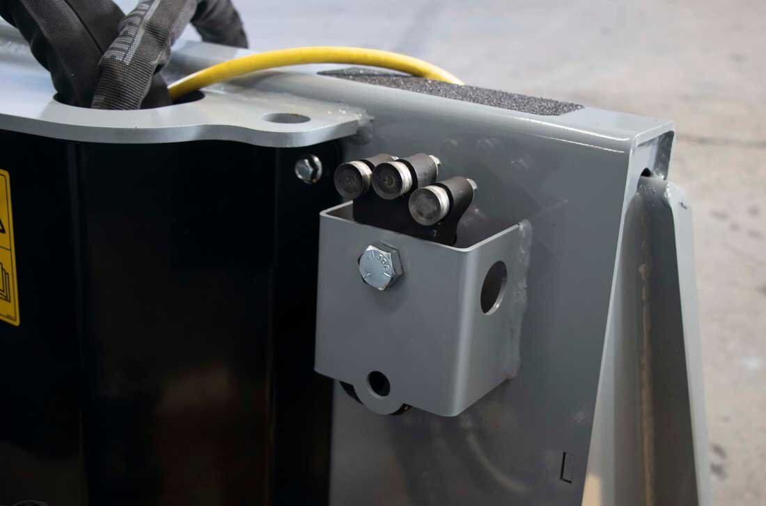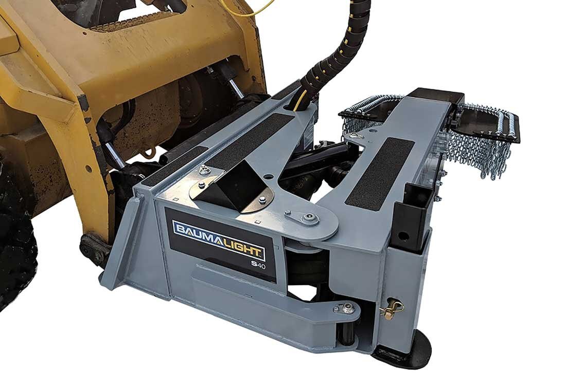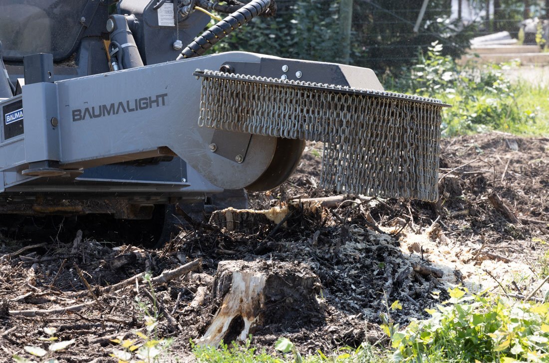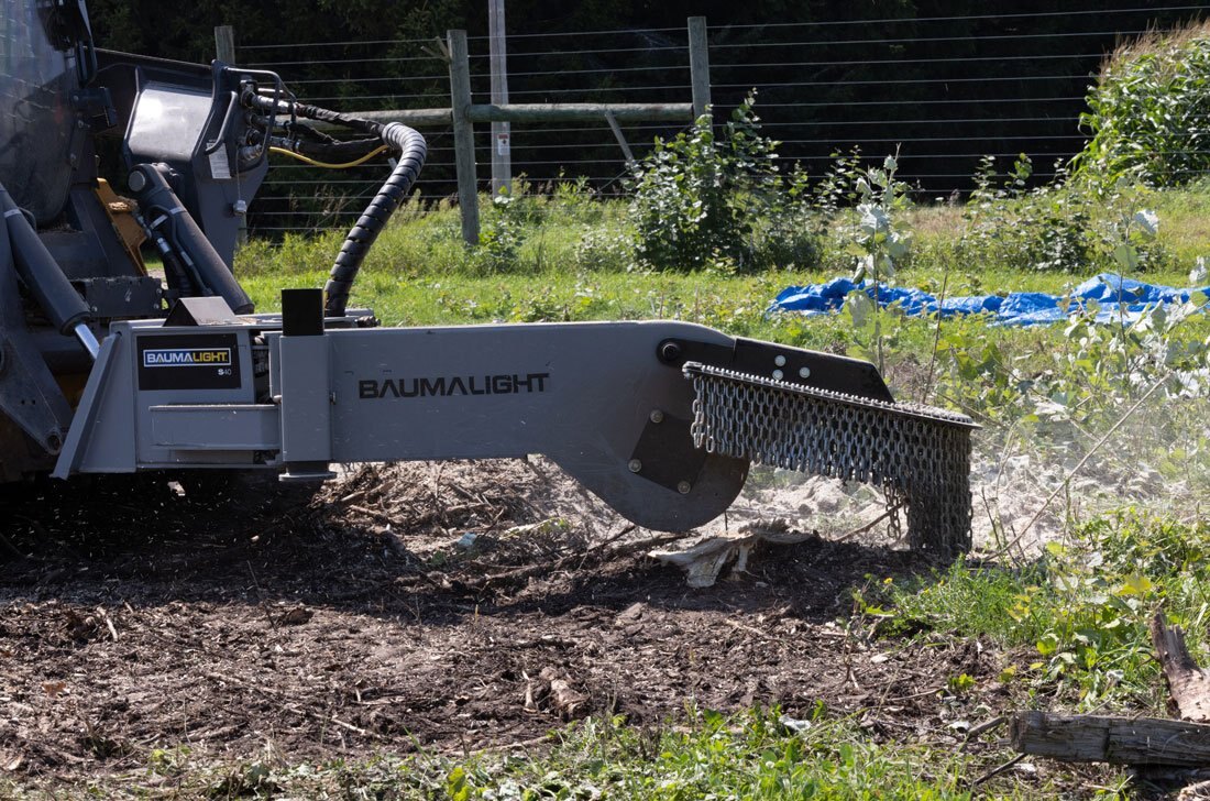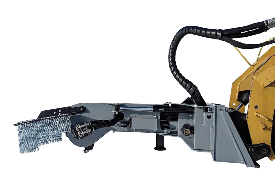 The S40 stump grinder is mounted with a bent axis piston motor. By matching a motor to your skid steers hydraulic flow these high efficiency motors make the most hydraulic power transforming it into the highest available stump grinding performance. Stocked with 20 High speed teeth the massive 1.25” thick steel rotor provides the back bone for the Skidsteer mounted stump grinder. The high number of teeth means that each tooth needs to do less work. Each tooth only needs to make a small cut, because the work is shared by more of these highspeed teeth, which last longer and typically only need 2 or 3 replaced at a time. The bolt-on designed teeth allow for straightforward replacement. The teeth can also be rotated up to 3 times to provide a renewed cutting surface even in the field.