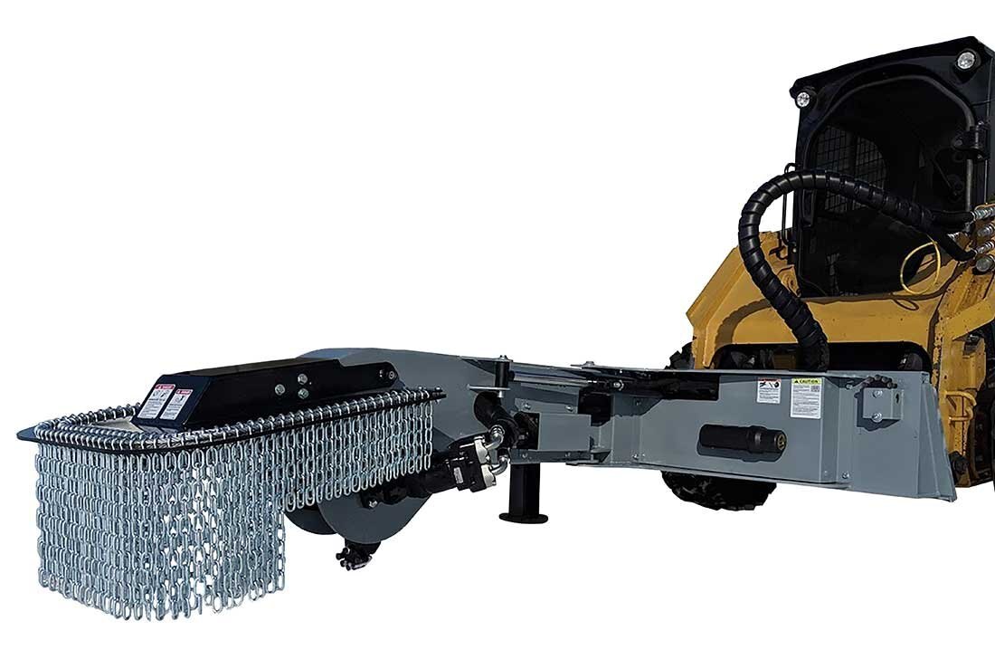 The extra-large Blast shield is designed with dual rows of chain curtains to contain and control chips during grinding. The Blast shield is hinged to give the best protection and chip control throughout the grinding process. This hinge also allows the shield to be raised to get into tight areas and for easy access to the rotor and teeth.