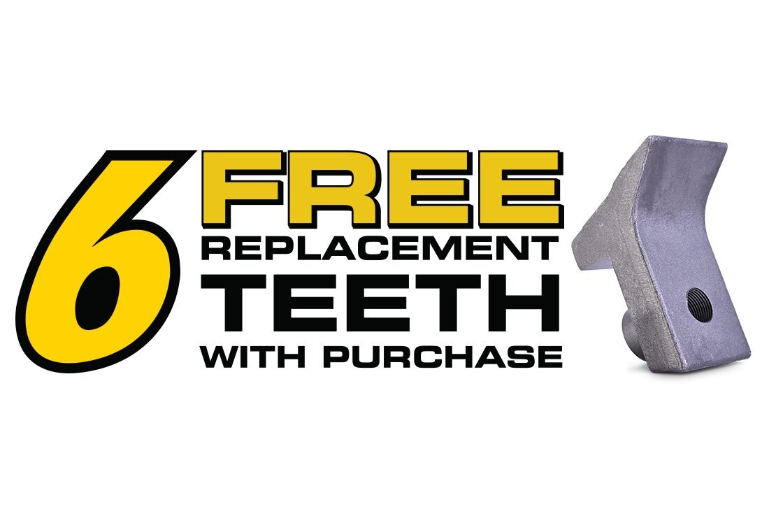 The MX1160R uses a fixed tooth holder and comes with 31 sharpenable planer teeth (P11000), as you will see in the brush cutting size charts this allow mulching of much larger material with an average carrier. The MX1160R comes with aggressive root rake ripper teeth build into the frame to rip out rocks and move logs. The unit also has a heavier duty body, built with a low-weight, high-strength AR400 steel.