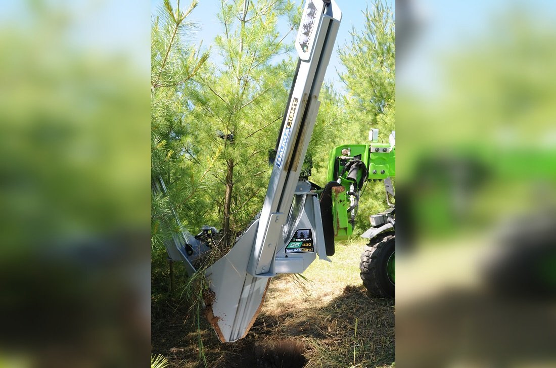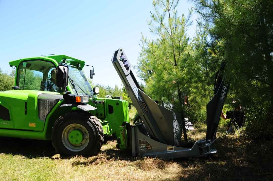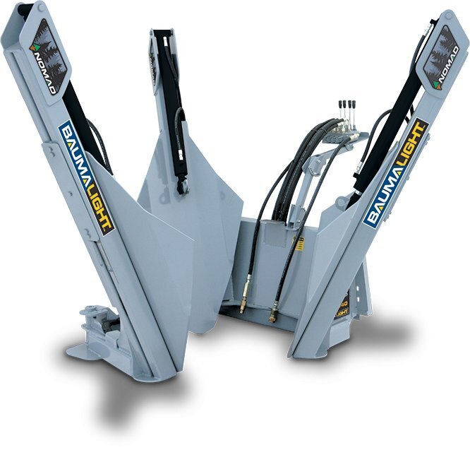 The Baumalight SS330 tree spade adds a hinged frame arm for easy positioning and less damage to lower branches. This three-blade tree spade can handle trees up to 3" in diameter. The rear spades on either side of the operator provide the best possible view of the spading operations. Operator comfort and size make this skid steer mounted tree spade a great match for landowners and landscapers.