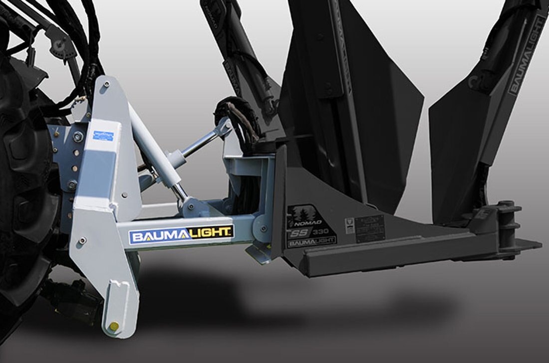 | The Baumalight PS330 adds a hinged frame arm for easy positioning and less damage to lower branches. This three-blade tree spade can handle trees up to 3" in diameter. The rear spades on either side of the operator provide the best possible view of the spading operations. Operator comfort and size make the PS330 tree spade a great match for landowners and landscapers. |
