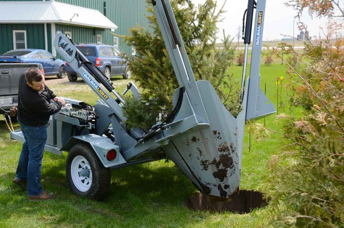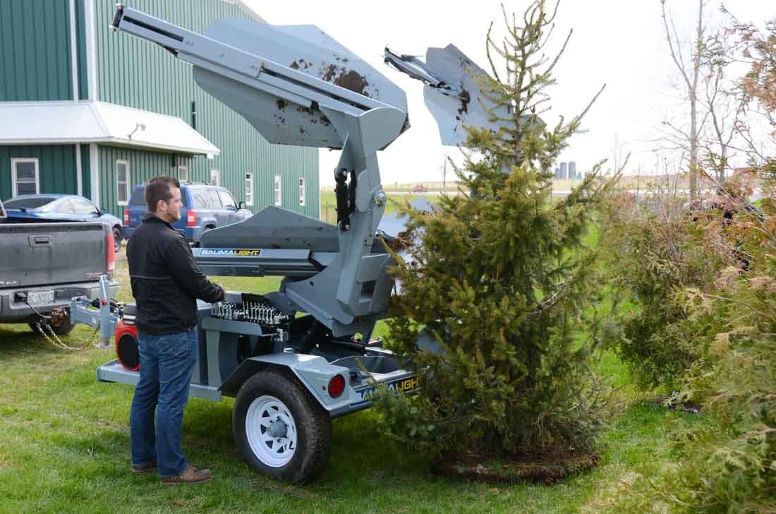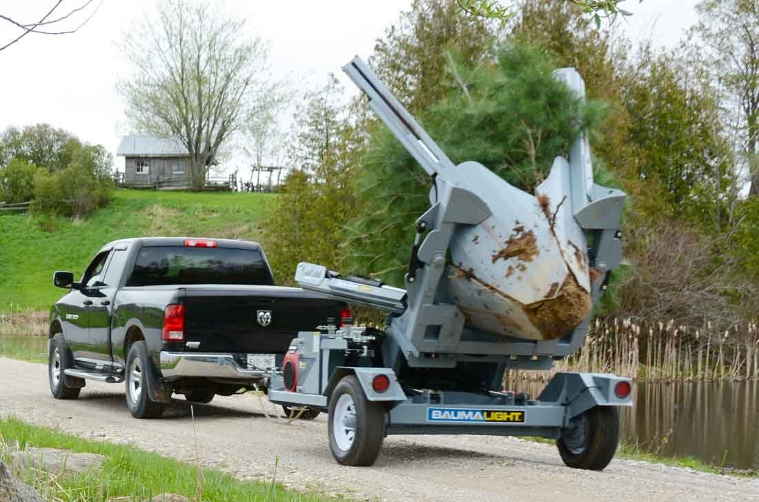 Trailer Mounted Tree Spade TR440 Combining mobility and power, the TR440 Trailer Mounted 40" tree spade is a great option for those without a loader, or those needing to transport a tree. The Trailer Mounted TR440’s 3D positioning system allows you to fine-tune the placement of the trailer and the tree spade without getting in and out of your truck, providing improved initial and final positioning for your spading operation and transplant results. |