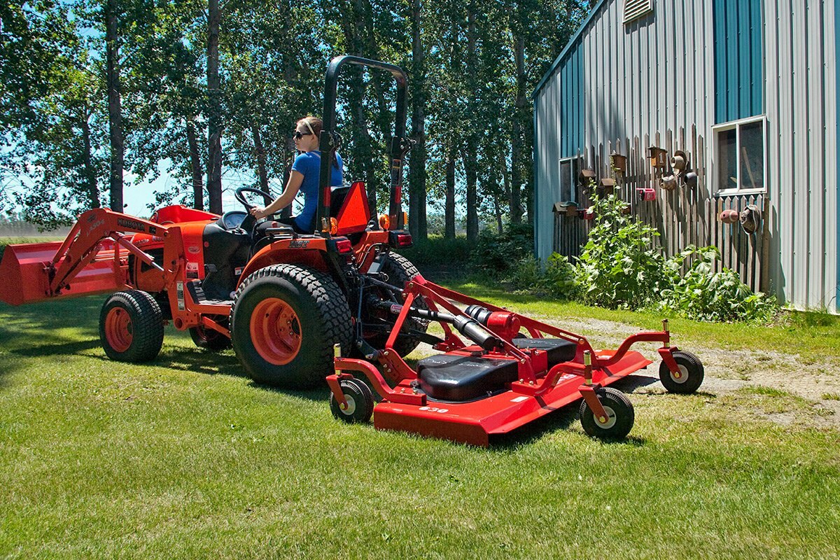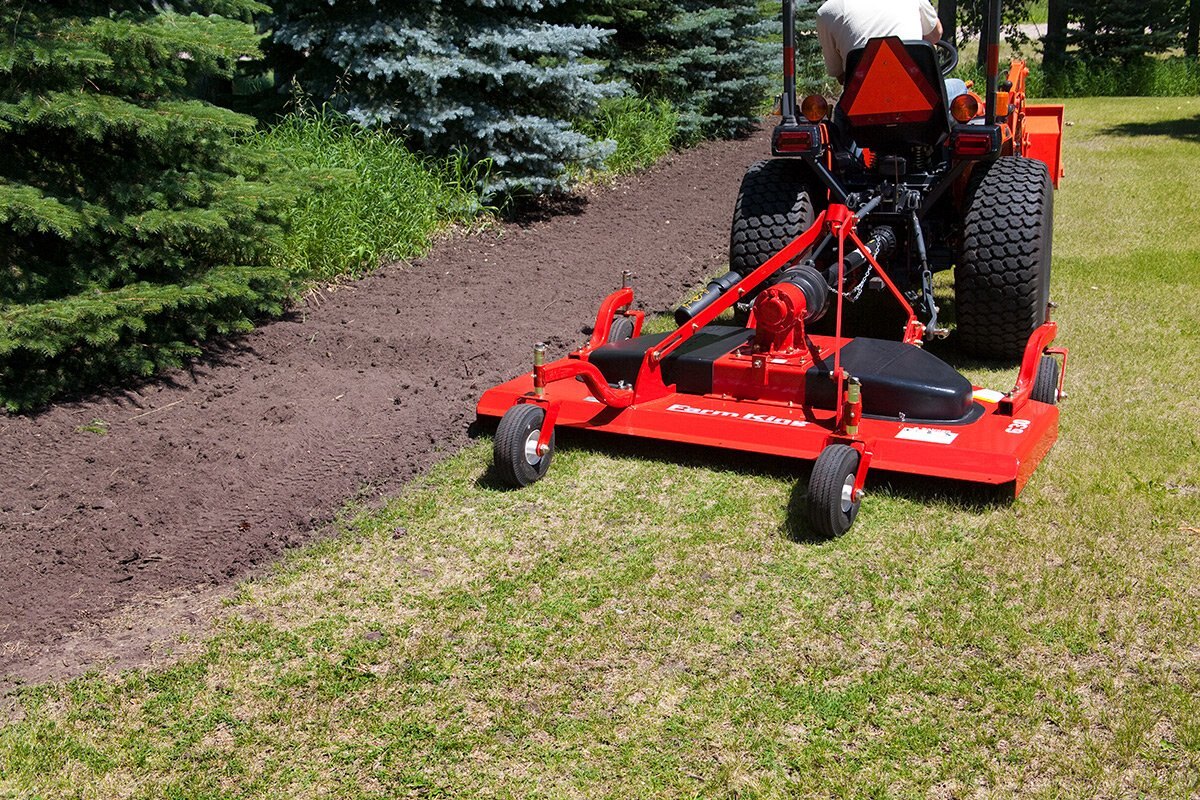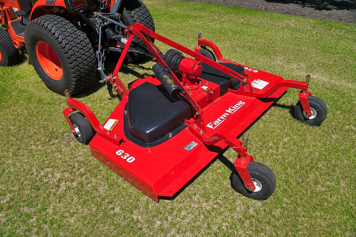 THE FARM KING HOME-OWNER FINISHING MOWER SERIES WAS DESIGNED AS AN ECONOMICAL CHOICE FOR USE ON LARGE ACREAGE HOMESTEADS. These finishing mowers are quick hitch compatible and are available in widths ranging from 48" to 72" for tractors from 12 to 30 hp. Farm King has been building top quality finishing mowers for 18 years and has refined these mowers to be among the best in the industry. Independent axle beams allow for quick replacement of parts while the optional solid rubber tires can easily withstand frequent heavy use. An optional chain kit minimizes the possibility of flying debris. |